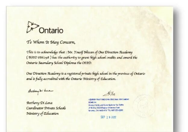新航道与加拿大安省实体中学One Direction Academy(ODA)合作,校号 BSID #886298.具备实体授课和线上教学双资质,是国内少有的“三年免检”认证校区。
