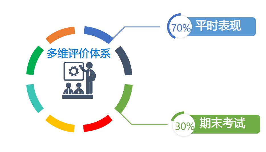 70%平时成绩(出勤、课堂参与、小测、演讲、作业等)