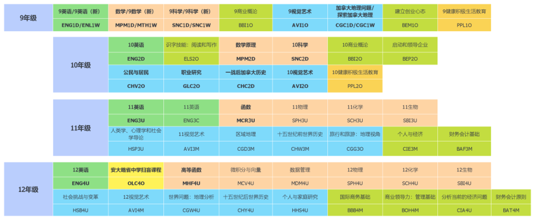 新航道OSSD开设课程总览