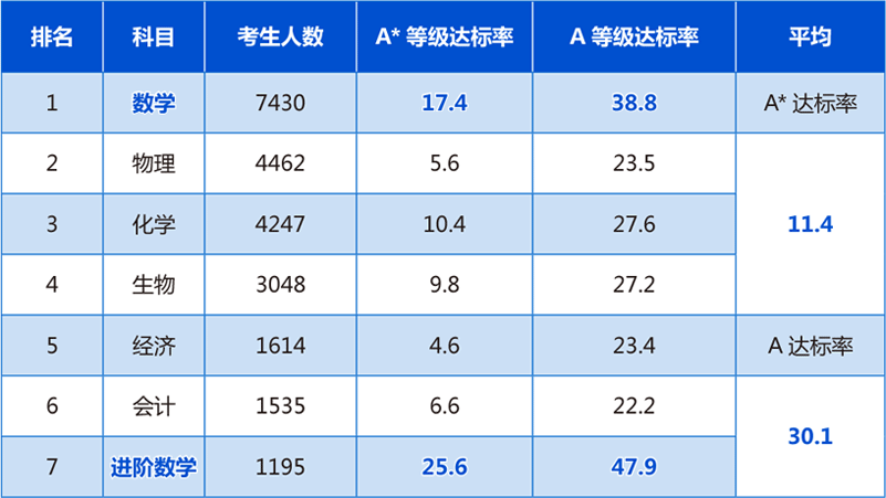 A- Level的成绩分为A*、A、B、C、D、E、U七个等级,A*为最优,E为通过,U为不及格。