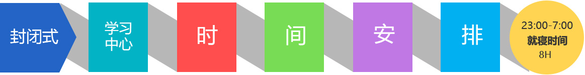 浸泡式学习、每天9小时学习辅导助教督学、校园式住宿、军事化管理