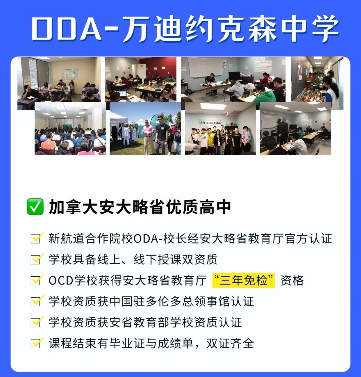 新航道OSSD课程就是和加拿大ODA学校达成合作,有教学、教研、师资培训等全方位支持,课程体系是和加拿大本土高中完全同步的,成绩认可度杠杠的。
