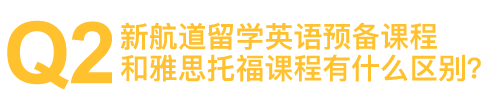 答:前者侧重英语语言的运用,即听说读写能力的培养和提升。内容上与雅思托福考试衔接,不涉及相关考试技巧训练,英语能力也是雅思托福考试分数背后的本质所在。后者是部分包含英语听说读写能力训练,后期课程则侧重考试本质规律和技巧的培训,以实现学员要在规定时间拿到理想成绩的需要。需备考雅思或托福的学生,可根据自己的英语基础和时间安排,将留学英语预备课程作为衔接课程来学习。