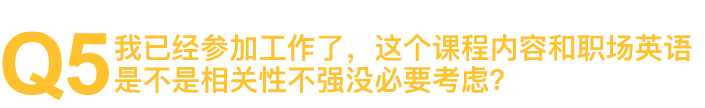 答:这只是一个错觉。留学预备课程学习内容并非限于校园,基于英语能力提升和衔接雅思托福的需要,场景涵盖的是国外学习、工作、生活的方方面面,教授的是外国人的思维和沟通,实用性本来就很强。课程难度从零基础逐渐增加,一对一以及企业员工团培都可以另外个性化定制课程内容,如将来需要雅思托福成绩增加求职砝码或出国留学,也可以做到无缝衔接。
