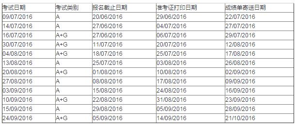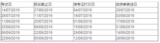 2016年7月至9月用于英国签证及移民的雅思考试考试报名截止日期、准考证打印日期和成绩单寄送日期