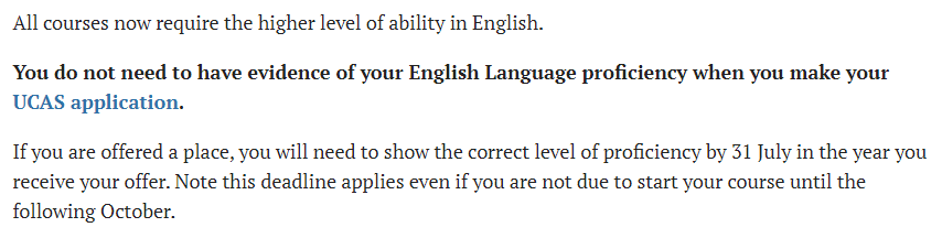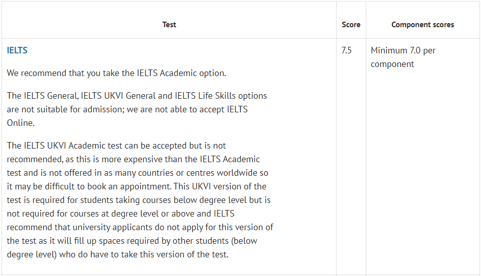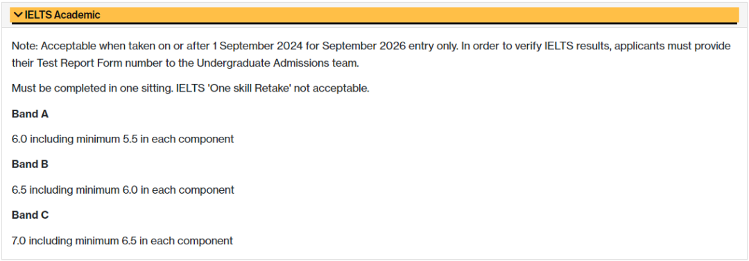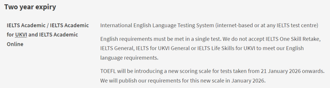 特别要强调的是:此处列出的均为本科、硕士项目直接录取的语言要求的分数,满足成绩不代表你就会被录取。