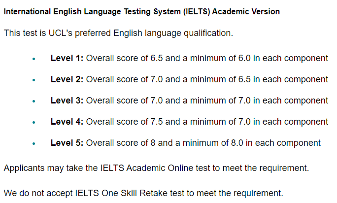 UCL不接受雅思重考!