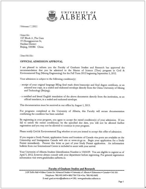 申请结果:阿尔伯塔大学 采矿工程硕士