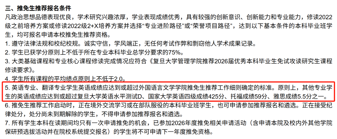 图源:复旦大学管理学院2026年本科毕业生推免生推荐工作细则