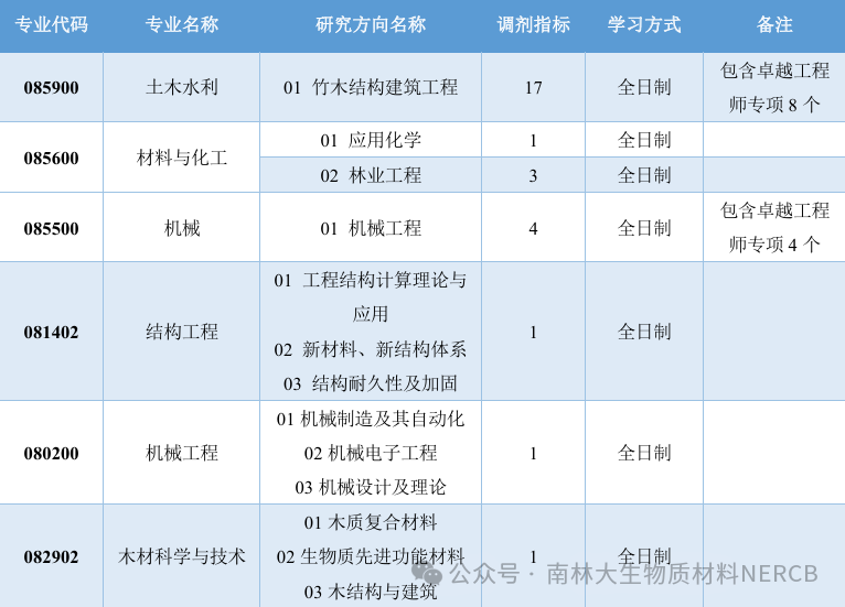 根据《南京林业大学2026年硕士研究生招生简章》和中心报考达线情况,现接收以下专业(或方向)调剂,调剂政策和要求如下: