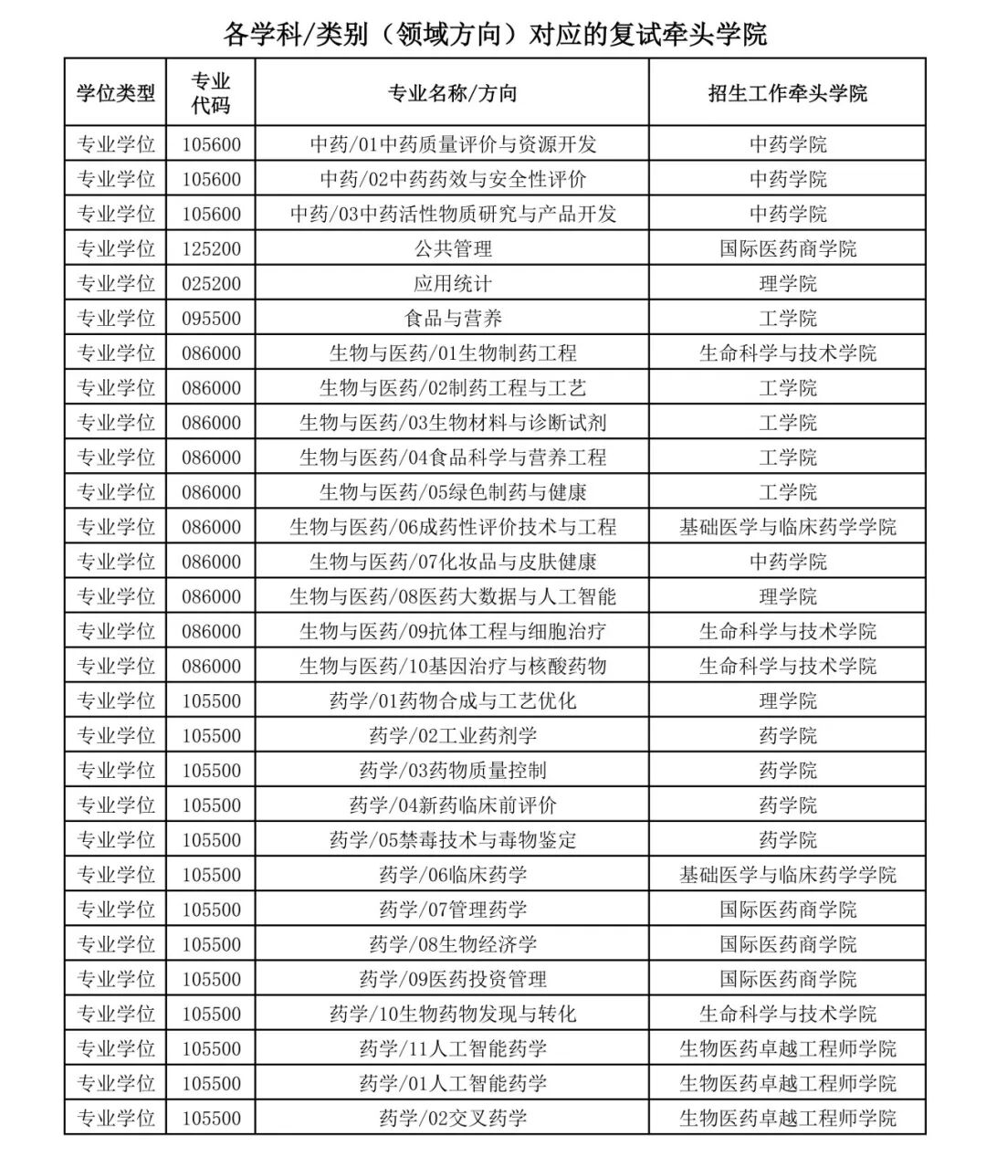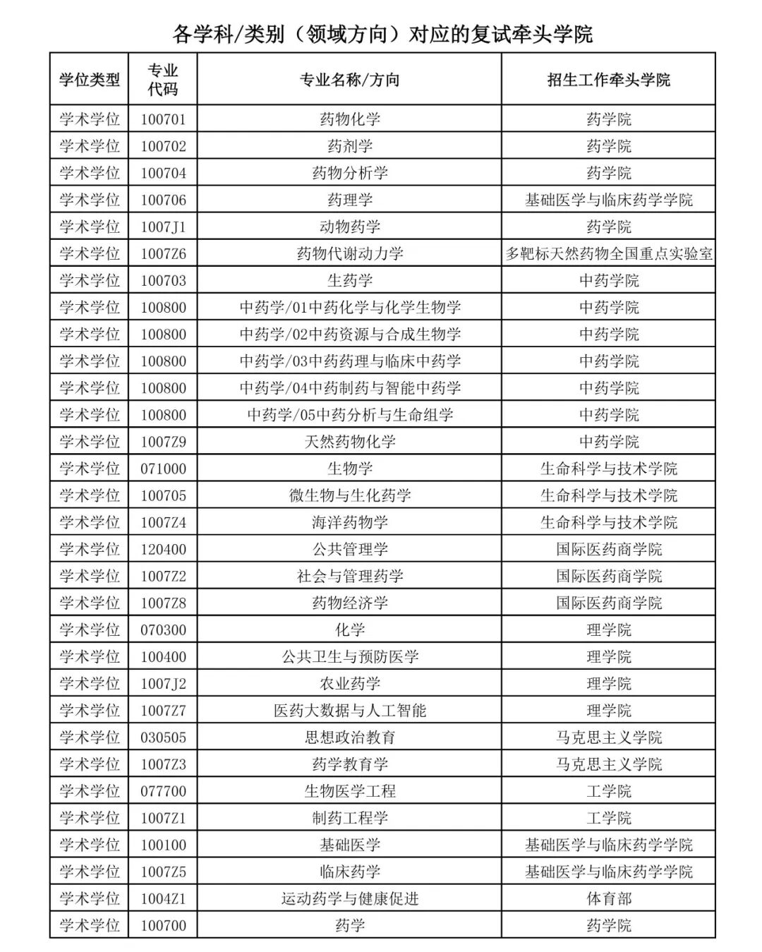 各学科/类别(领域方向)对应的复试牵头学院表请查阅附件1.