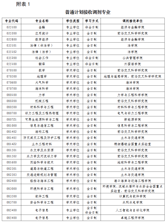 1.根据我校2026年硕士研究生一志愿复试情况,部分专业可以接收普通计划调剂,具体拟调剂计划和要求见各单位官网调剂通知(陆续公布),接收调剂专业见附表1.