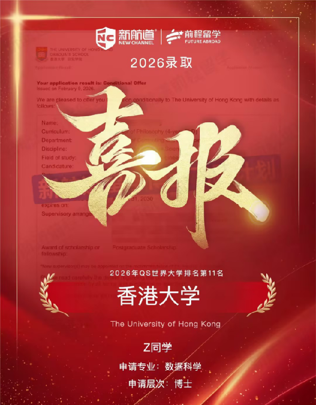 UCL本科一等荣誉学位同学,港大全奖博士,拿到校长奖学金 + 港府奖学金提名,7 年完成本博学习,25 岁即可博士毕业。
