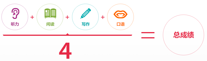 总分一般是通过四个单项分数平均后四舍五入的成绩,通常是以接近半分又或者是整分成最终成绩。