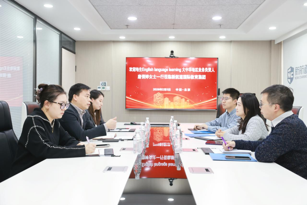 2026年2月5日,培生英语测评业务大中华区负责人唐倩婷女士一行到访新航道集团总部,与新航道国际教育集团副总裁雷丰奎、教学与考试研究院院长董悦进行了深度交流,共同探讨并展望在市场推广、教师培训等多领域的持续合作。