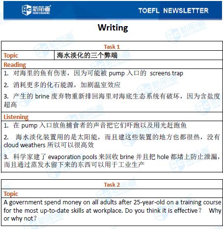综合写作topic:海水淡化的三个弊端。阅读部分提出了淡化海水的3种弊端。听力部分反驳阅读部分。