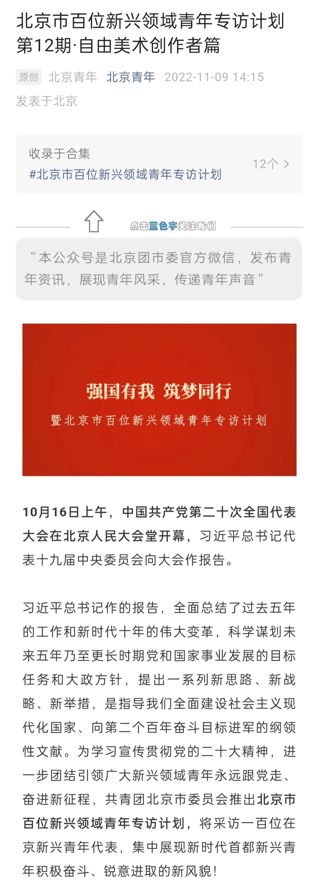 记者:党的二十大已于近日召开,它是在全党全国各族人民迈上全面建设社会主义现代化国家新征程、向第二个百年奋斗目标进军的关键时刻召开的一次十分重要的大会。作为一名自由美术工作者,您有哪些学习感想?未来您如何通过自身的创作实践进一步学习贯彻党的二十大精神?