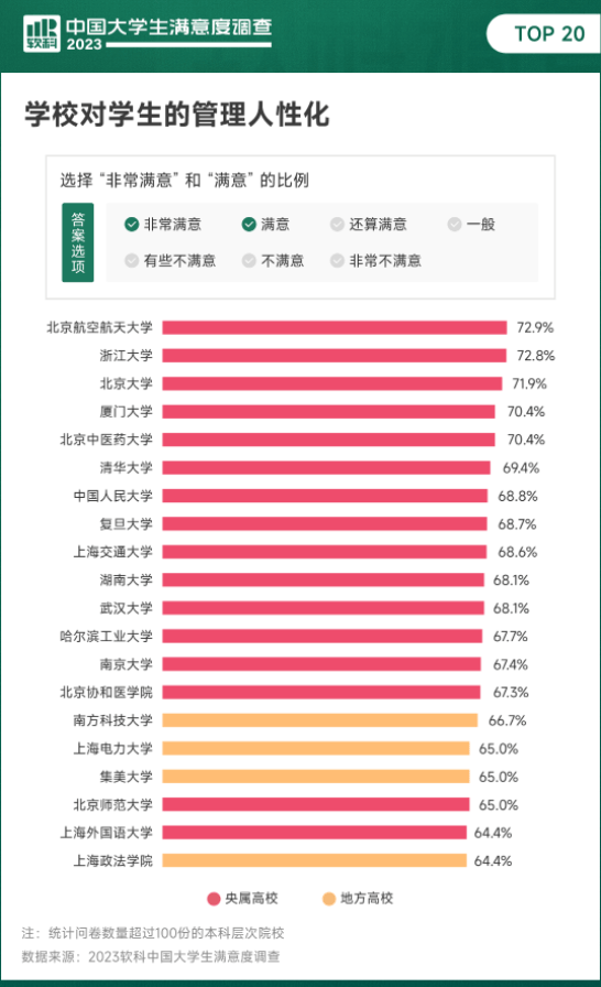 刚刚!高等教育专业评价机构软科正式发布2023中国大学生满意度调查结果。