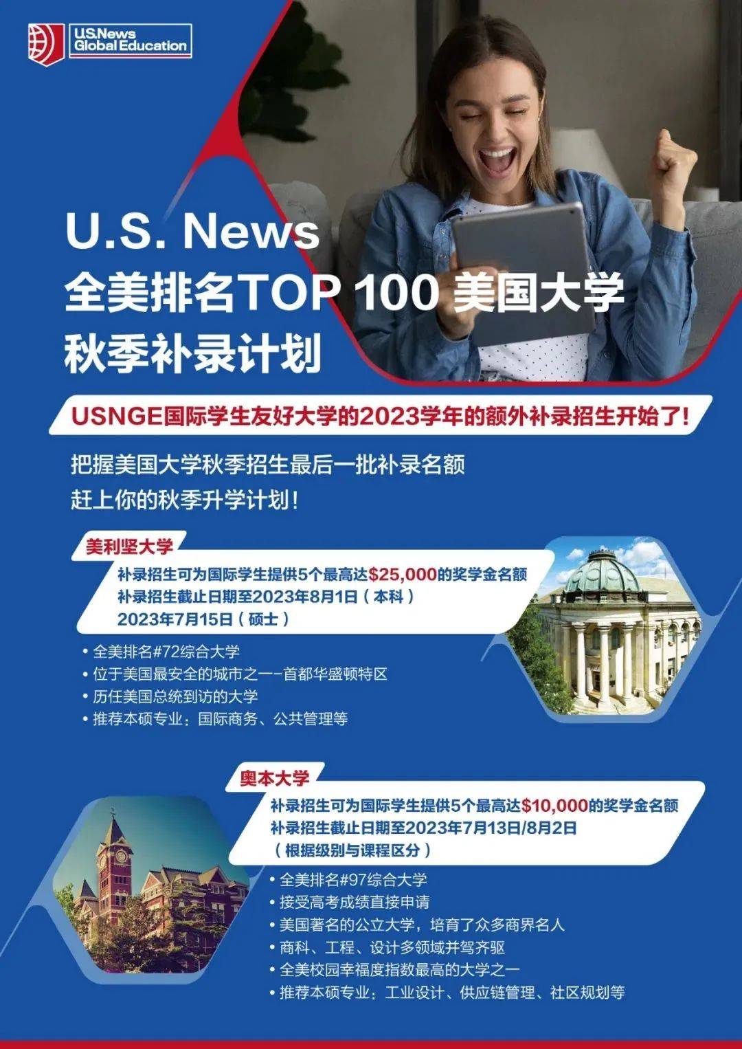 还没收到理想offer的同学注意了!USNGE国际学生友好大学的2023学年的额外补录招生最后倒计时!