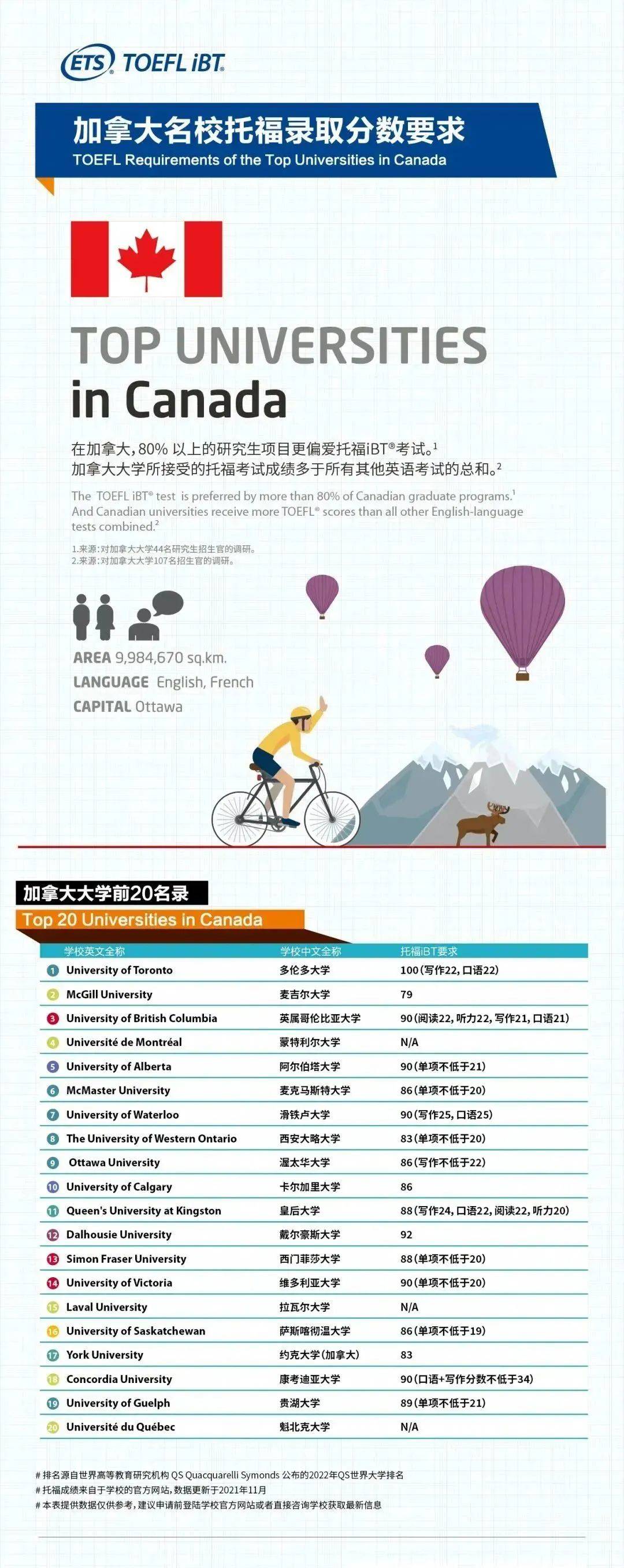 在加拿大,超过80%的研究生项目更青睐托福iBT考试。