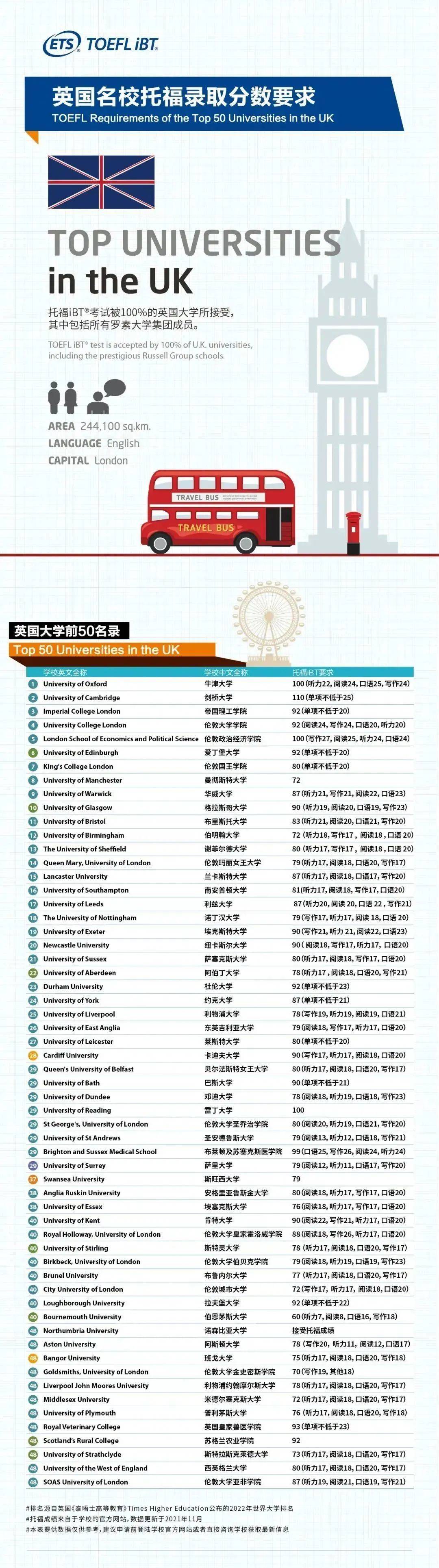 目前,托福已被世界160多个国家的11500多所综合性大学、机构和学校认可。一起来看看,各国TOP高校托福成绩要求汇总!