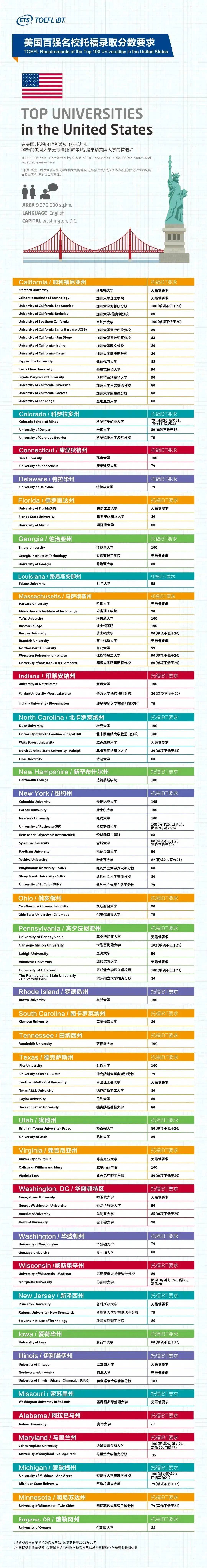 TOP10-20美国大学,需要托福成绩在110分以上;