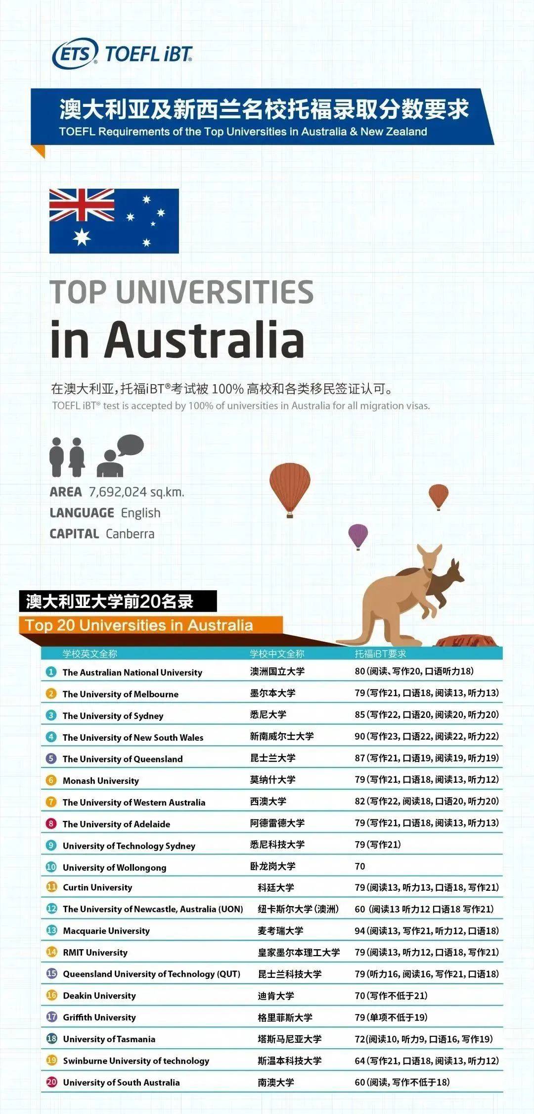 据TOFEL iBT考试官方消息,澳大利亚大学100%认可托福考试,托福成绩仍可申请学生签证!