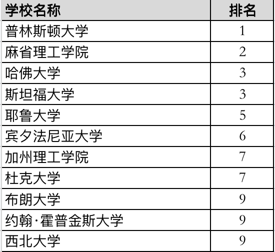 普林斯顿大学仍然位居榜首,麻省理工也稳居第二;