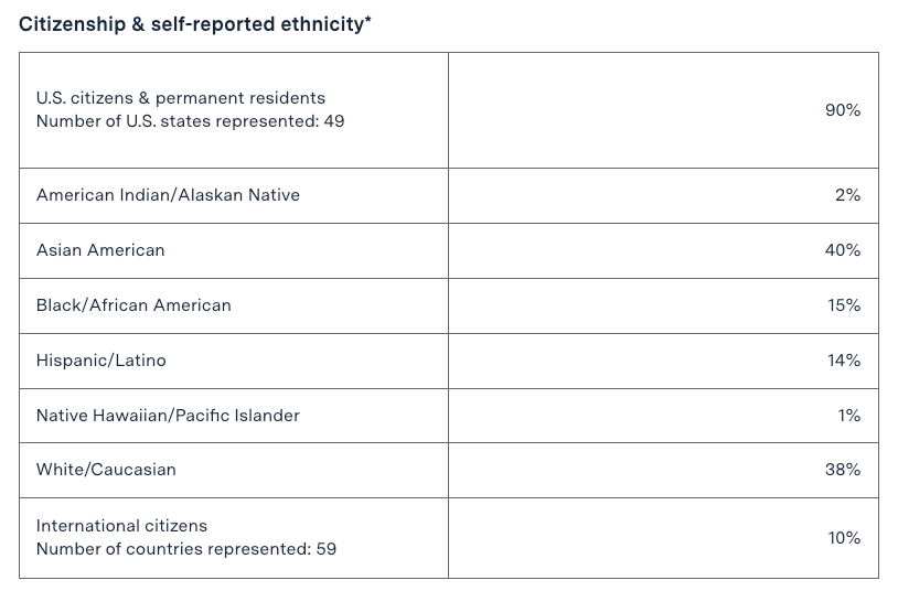 从国籍和族群上看,来自59个国家的海外学生占新生总人数的10%。