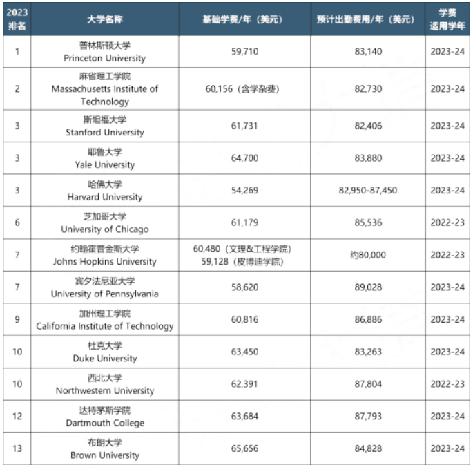 普林斯顿大学学费由之前的57,410美元上涨至59,710美元,涨幅约4%,每年就读总成本高达83,140美元;