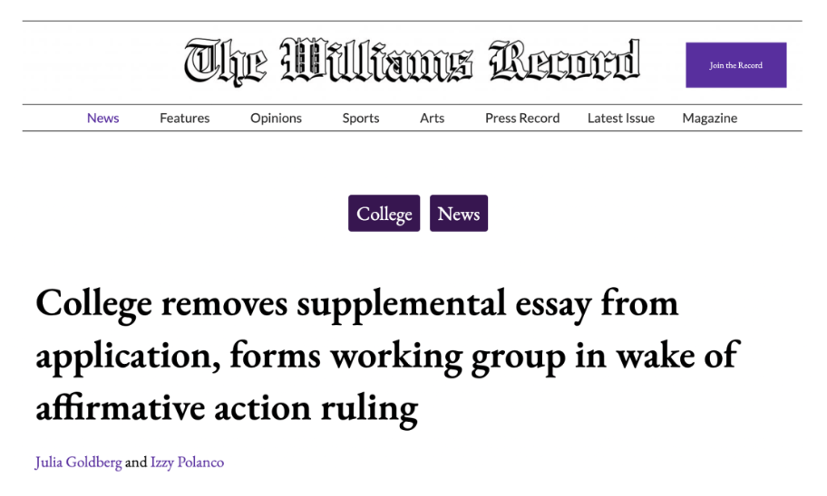 威廉姆斯学院发布重磅消息