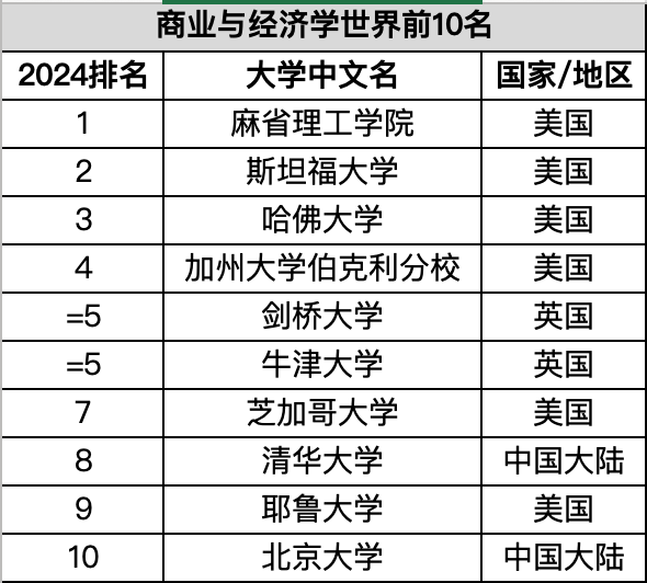在商业与经济学世界前10名中,麻省理工学院位列。