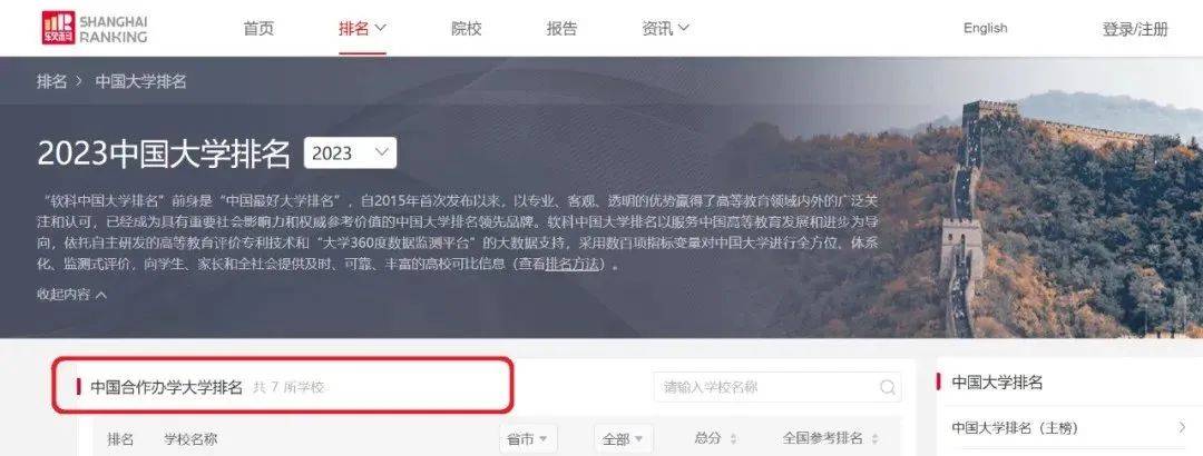 2023年软科发布了一系列“中国大学排名”。其中有一项就是【中国合作办学大学排名】,对未来想出国留学的学生很有参考价值!