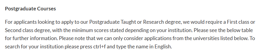 ① 如果你是北京师范大学-香港浸会大学联合国际学院或香港中文大学(深圳)的学生/毕业生,你需要满足中国香港地区相应的入学要求。