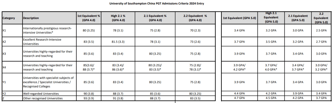 面对国内大学,南安普顿大学有自己的认可名单,并在官网展示。南安将中国大学分为7个档次,每个档次对应不同的录取分数要求。