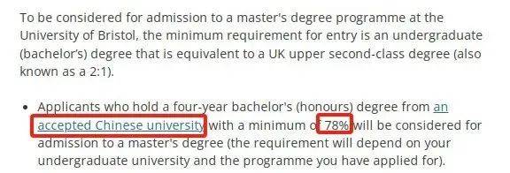提醒大家注意:布里斯托这个均分要求大家看看就好,事实上不同专业有不同的均分“底线”。