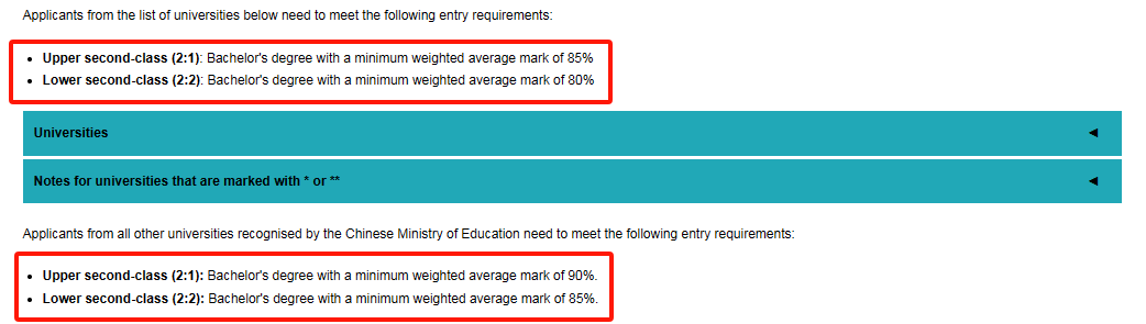 对于非认可名单中的大学:英本二等一学位:对标均分90%
