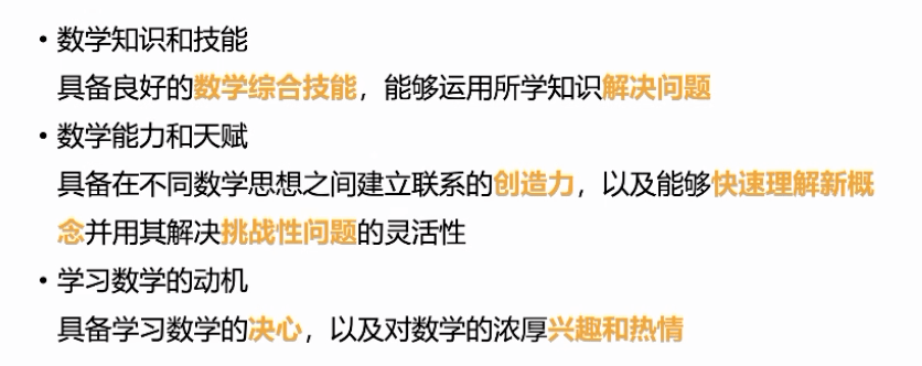 能够展示对数学兴趣的深度或广度,尤其是对学校教学大纲之外的兴趣 (如阅读、参加俱乐部、参加竞赛等);