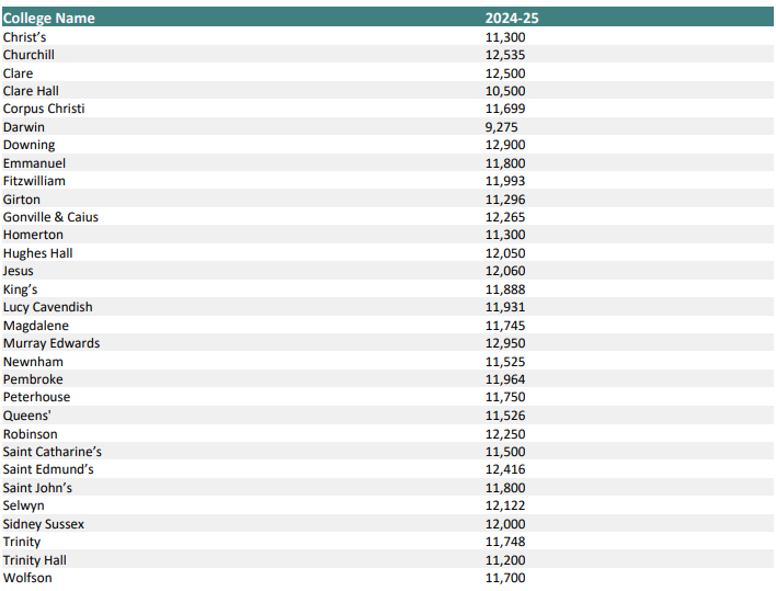 除了学费之外,College fee每年1万英镑左右(比上一年有小幅上涨),具体要看是哪个学院,这项涵盖了学生所在学院提供的一系列教育、管理和牧养服务及支持的费用。具体如下: