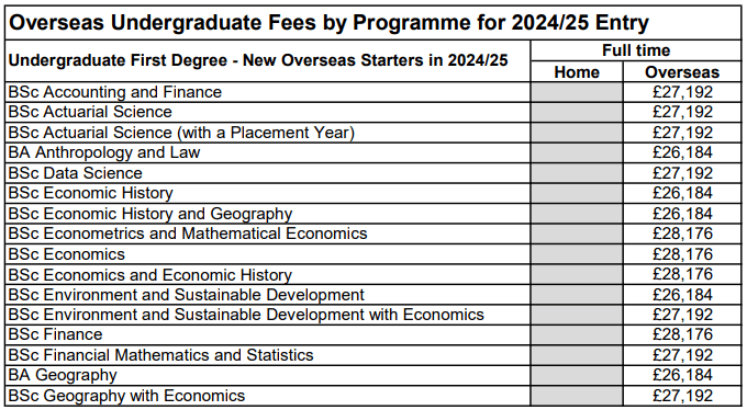 LSE本科学费因专业而有所不同,不过差距不大,介于£26,184-£28,176(£24,720- £26,592)之间,涨幅约6%。