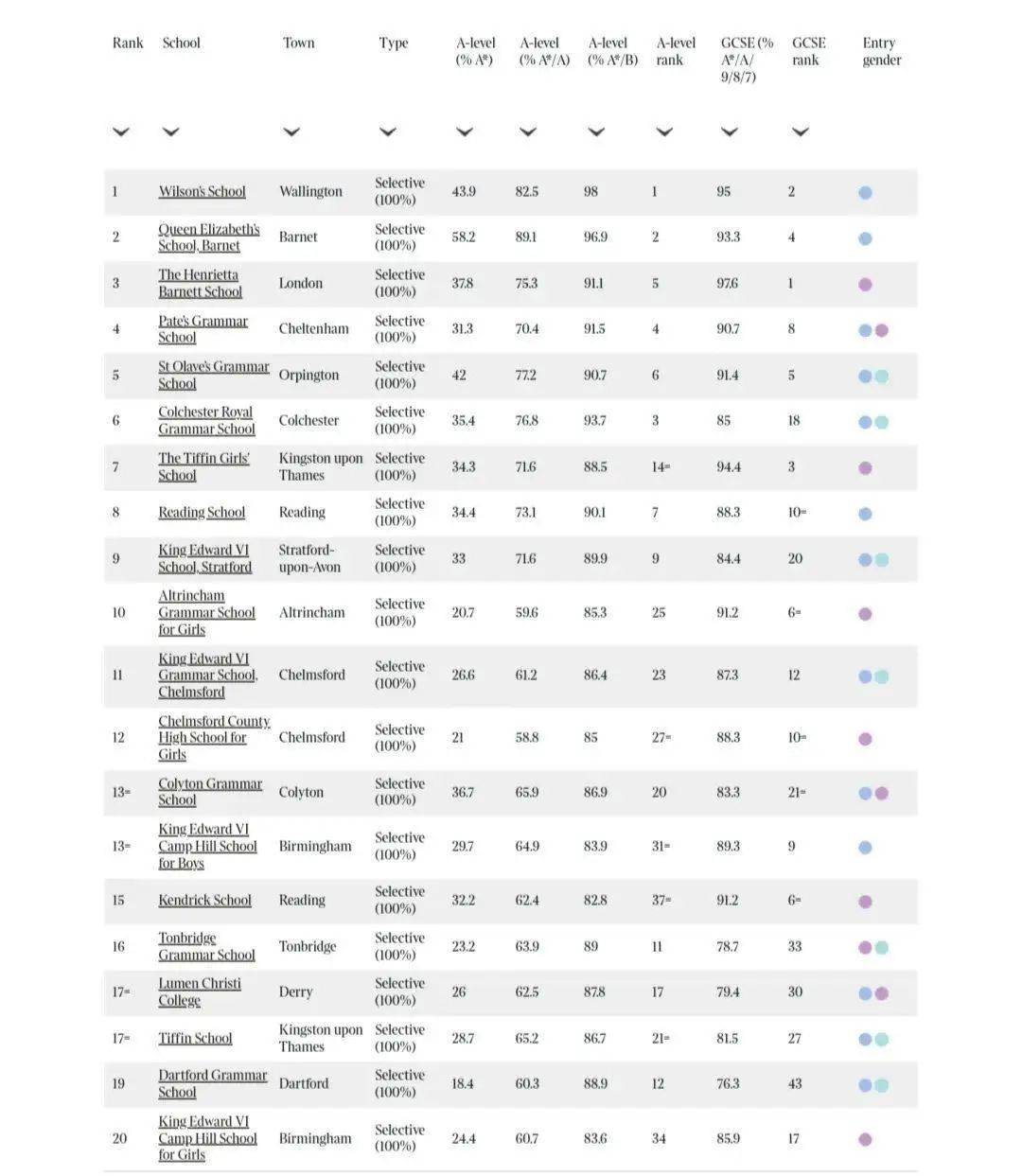 英国《星期日泰晤士报》发布了大家期待的公立/私立中学榜单。这个榜单不仅仅综合比较了英国中考GCSE和高考A Level的成绩排名,还包括学生的大学去向、学生的进步、家长的反馈和学校生活的方方面面,对想要去英国留学的家庭来说是一份客观、、权威的参考资料。