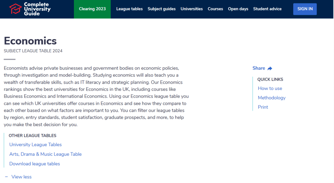 【经济学学科】CUG排名:英国第6
