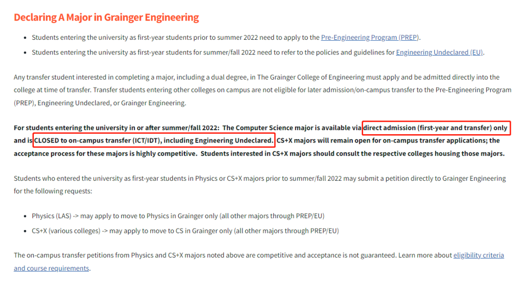 伊利诺伊大学香槟分校(UIUC)宣布,从2022年夏季和秋季学期开始,校内学生不能再转专业进入计算机科学(CS)专业,只接受直接申请。