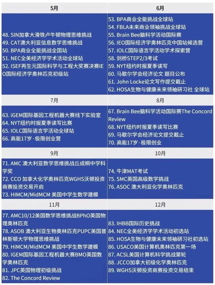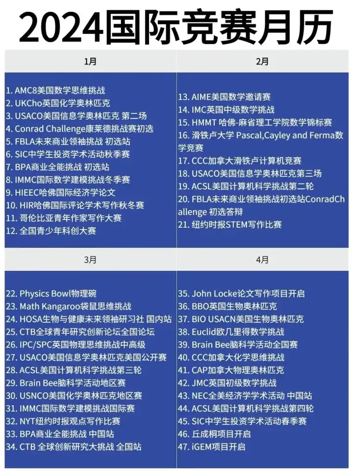 国际竞赛对升学有什么有利之处?以下为2024年国际中学竞赛时刻表