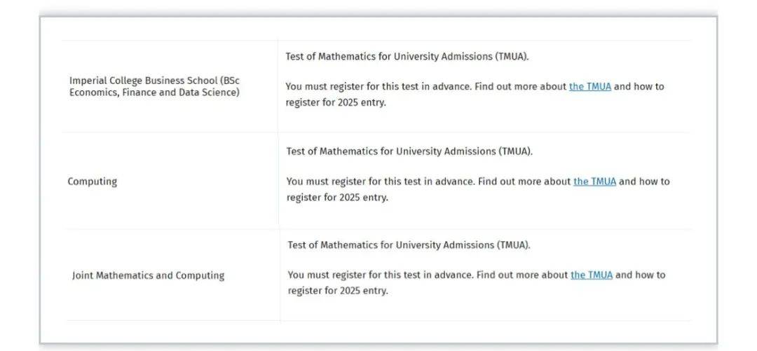 此外,商学院(经济金融与数据科学)、计算机、数学与计算机专业需要参加TMUA入学笔试,这也是2025FAll比较重要的变化之一。