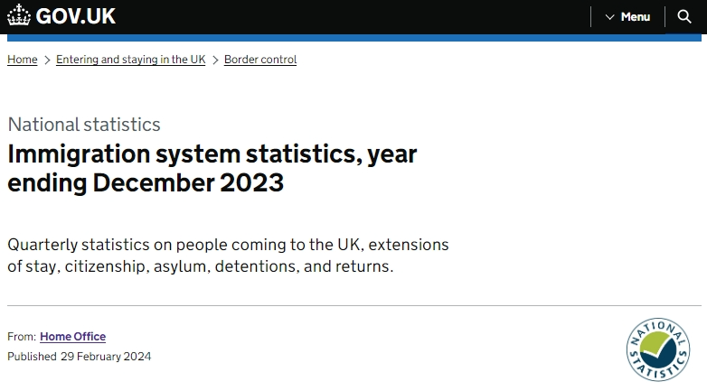 2月29日,英国内政部发布了,的2023年度签证数据报告。