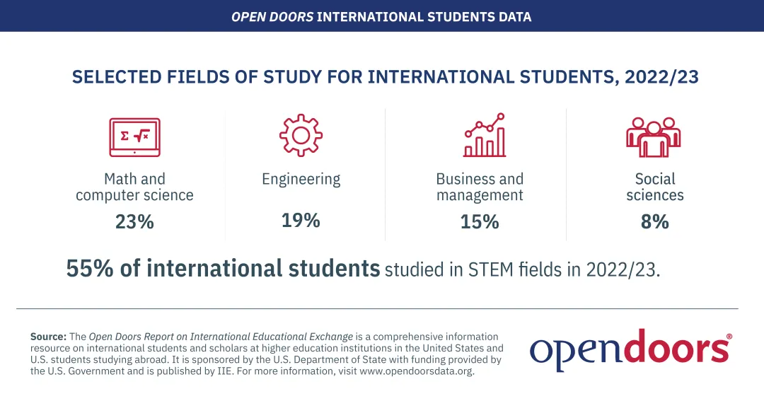 随着国家对于基础研究等领域的进一步重视,以及ChatGPT等生成式人工智能领域的不断突破,对于更加先进知识的学习和研究仍是留学的主要方向,STEM领域依然是留学专业选择的主流。