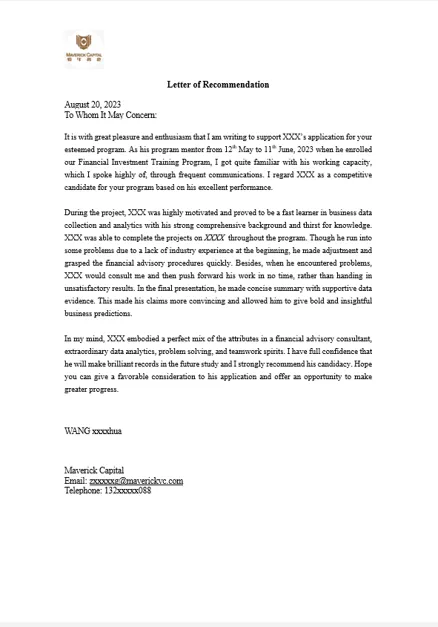 完成工作任务的学员,可获金融投资机构颁发的实训项目证明以及高管推荐信。这些证明材料均能支持企业背景调查,以及学校申请,升学工作无后顾之忧。我们还将纳入职业发展板块与工作技能板块。帮助初入职场的小菜鸟更好的认知未来,从简历到模拟面试到职业发展导师全程护航;导师将手把手的传授职场Excel、PPT、PDF、Email和演说技巧,让学员在学校期间充分得到社会的历练。