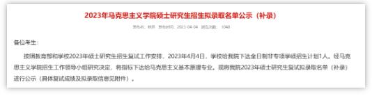 马克思主义学院公布了2023年硕士研究生招生补录名单,补录3人。
