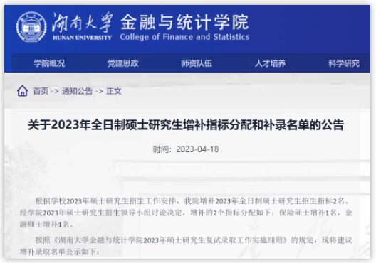 金融与统计学院增补2023年全日制硕士研究生招生指标2名。